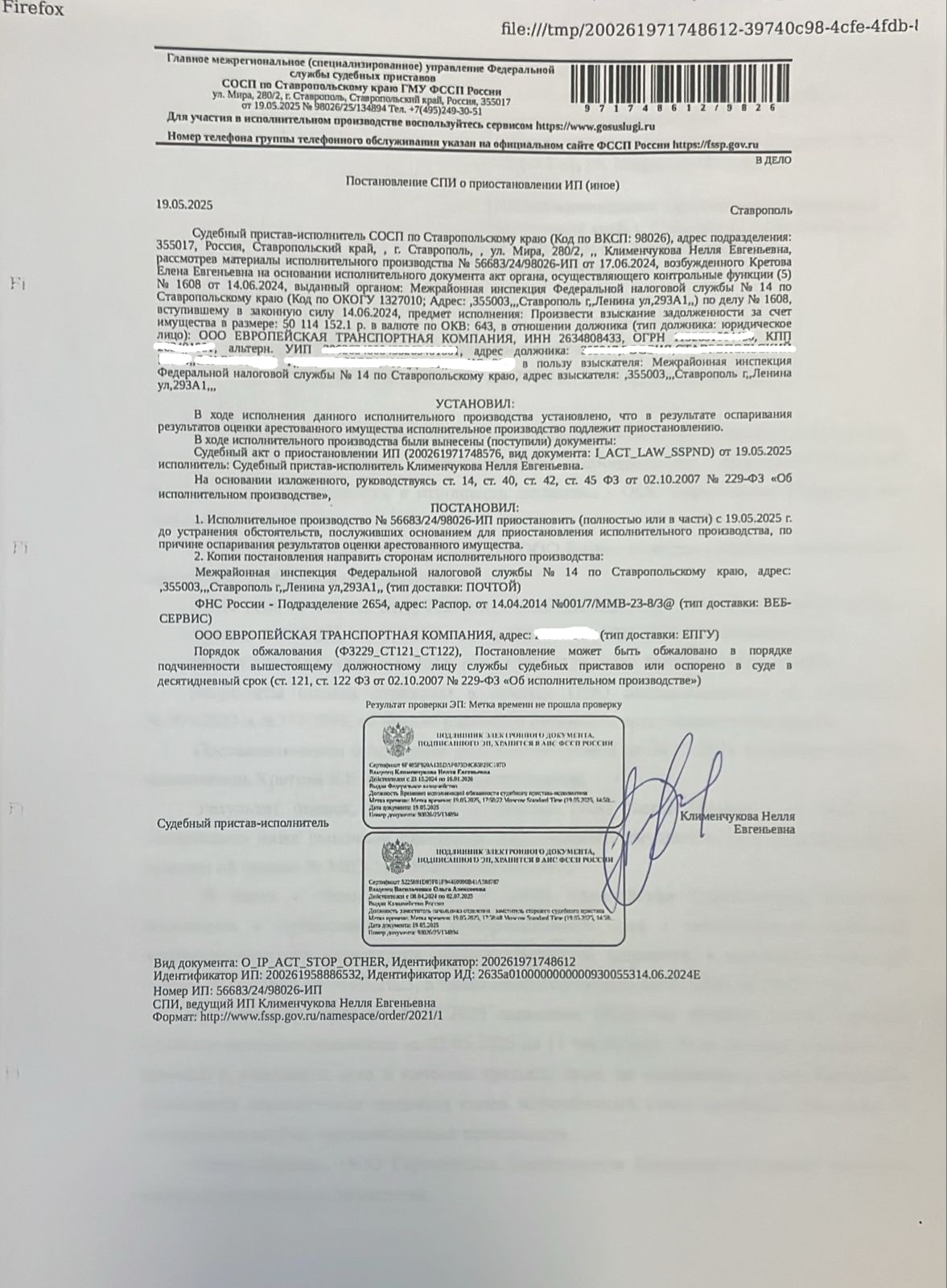 ООО «Европейская транспортная компания», ИНН 2634808433